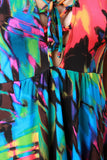 • Abstract Neon V-Neck Lace Up Maxi Dress